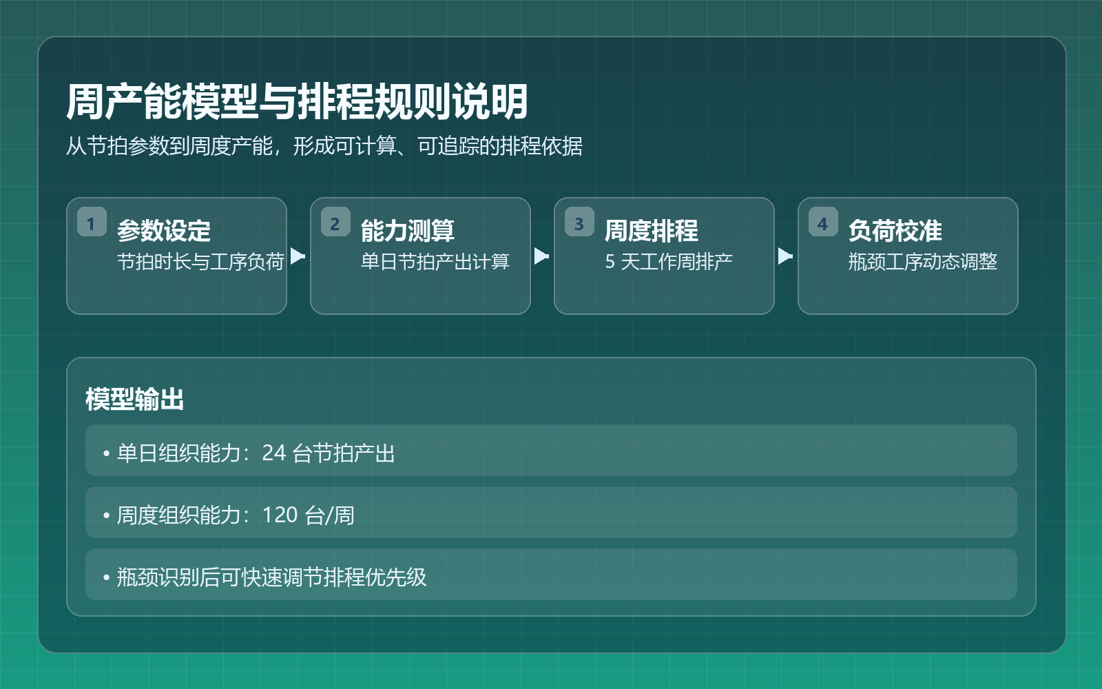 За счет тактовой организации N=6 и I=1 сформирована стандартизированная производственная ритмика и недельная модель мощности.