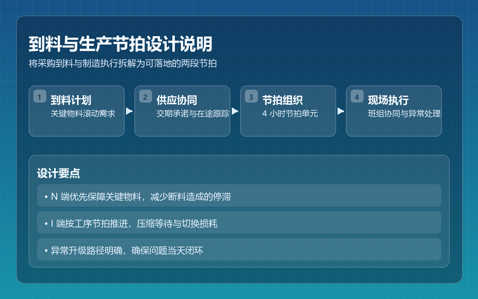 - 将采购到料与生产制造拆解为 N+I 两段目标管理。
